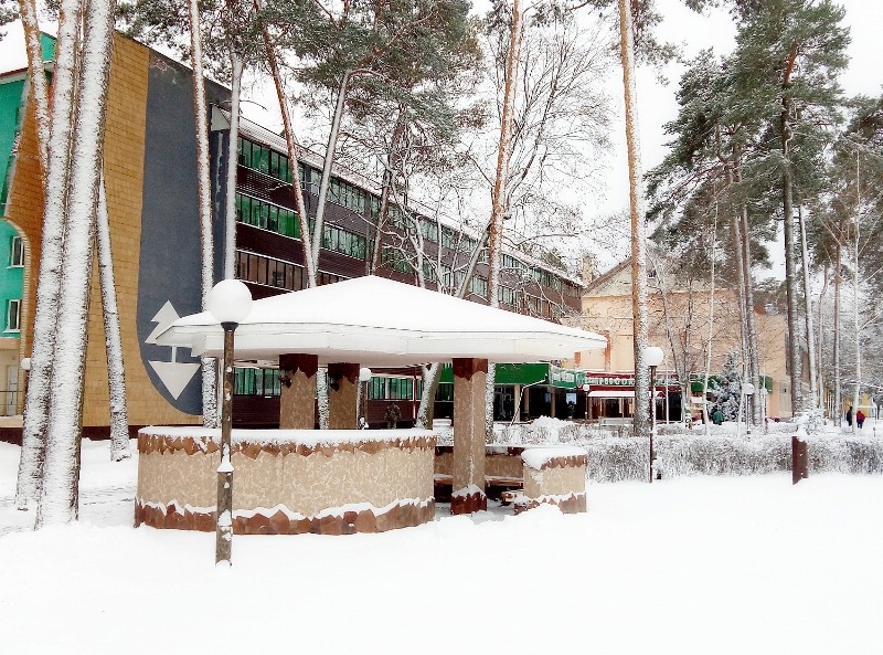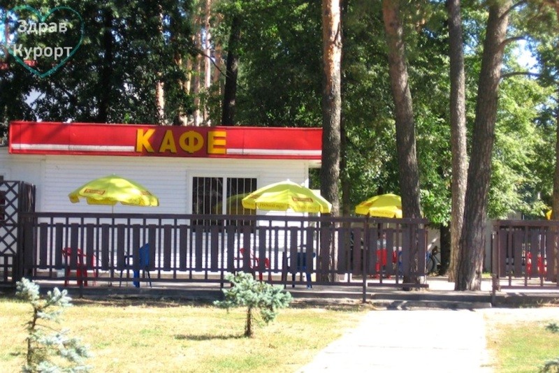 На территории санатория располагается уютное кафе, где посетители могут привести приятный вечер в окружении друзей.