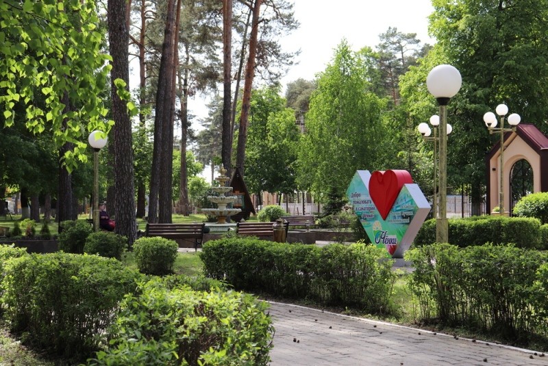 На территории санатория воздух настоян на аромате лесных трав и хвои леса, прогулки доставляют максимум пользы и удовольствия. Санаторий находится в смешанном лесу. В 100 метрах от санатория протекает река Сож.